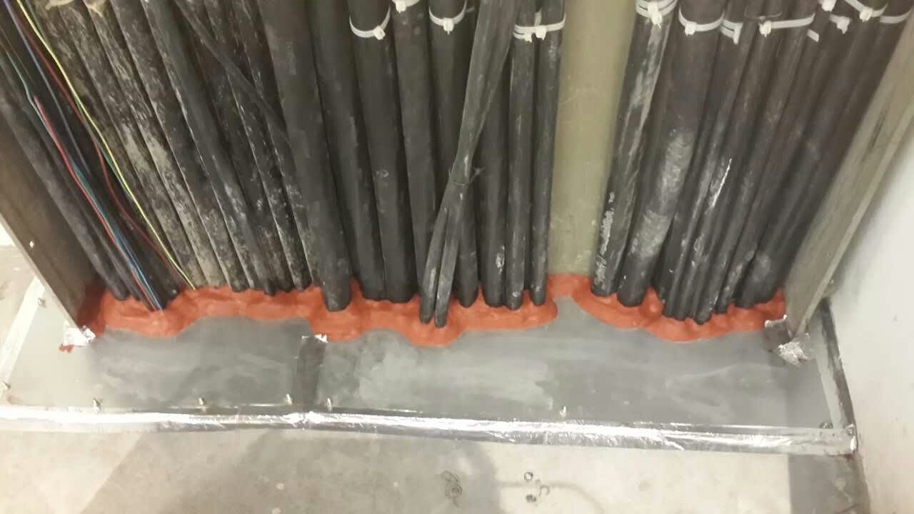 在電纜縫隙和防火板四周用3M防火泥CP25WB+進行密封